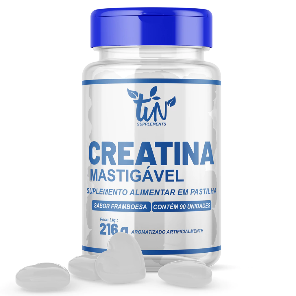 💗 Creatina Mastigável – Sabor Framboesa | 90 Corações por Pote