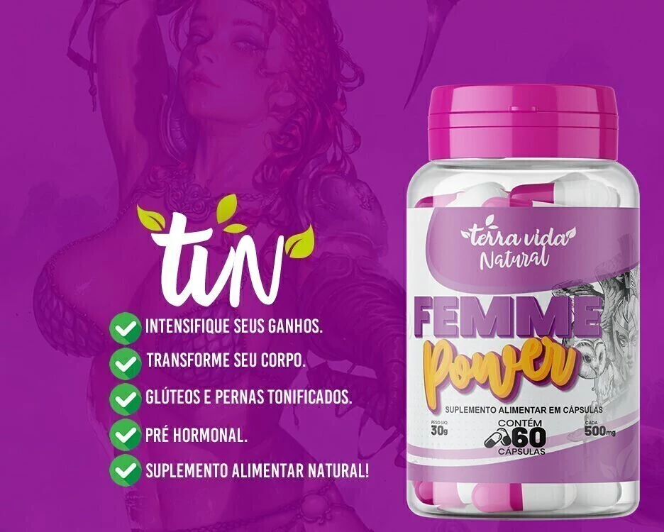 Femme Power da Terra Vida Natural é um pré-hormonal poderoso que aumenta os níveis de testosterona com ingredientes 100% naturais. Pode ser consumido por homens e mulheres.