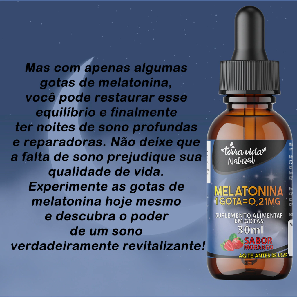 🍃 Sabor Delicioso: A combinação de melatonina com o sabor de morango torna o uso ainda mais agradável! Sugestão de Uso: Coloque 10 gotas sob a língua 30 minutos antes de dormir.